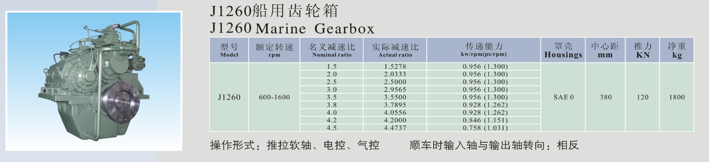 | 前進名義減速比: | 1.5 | 輸入轉速: | 600-1600rpm |