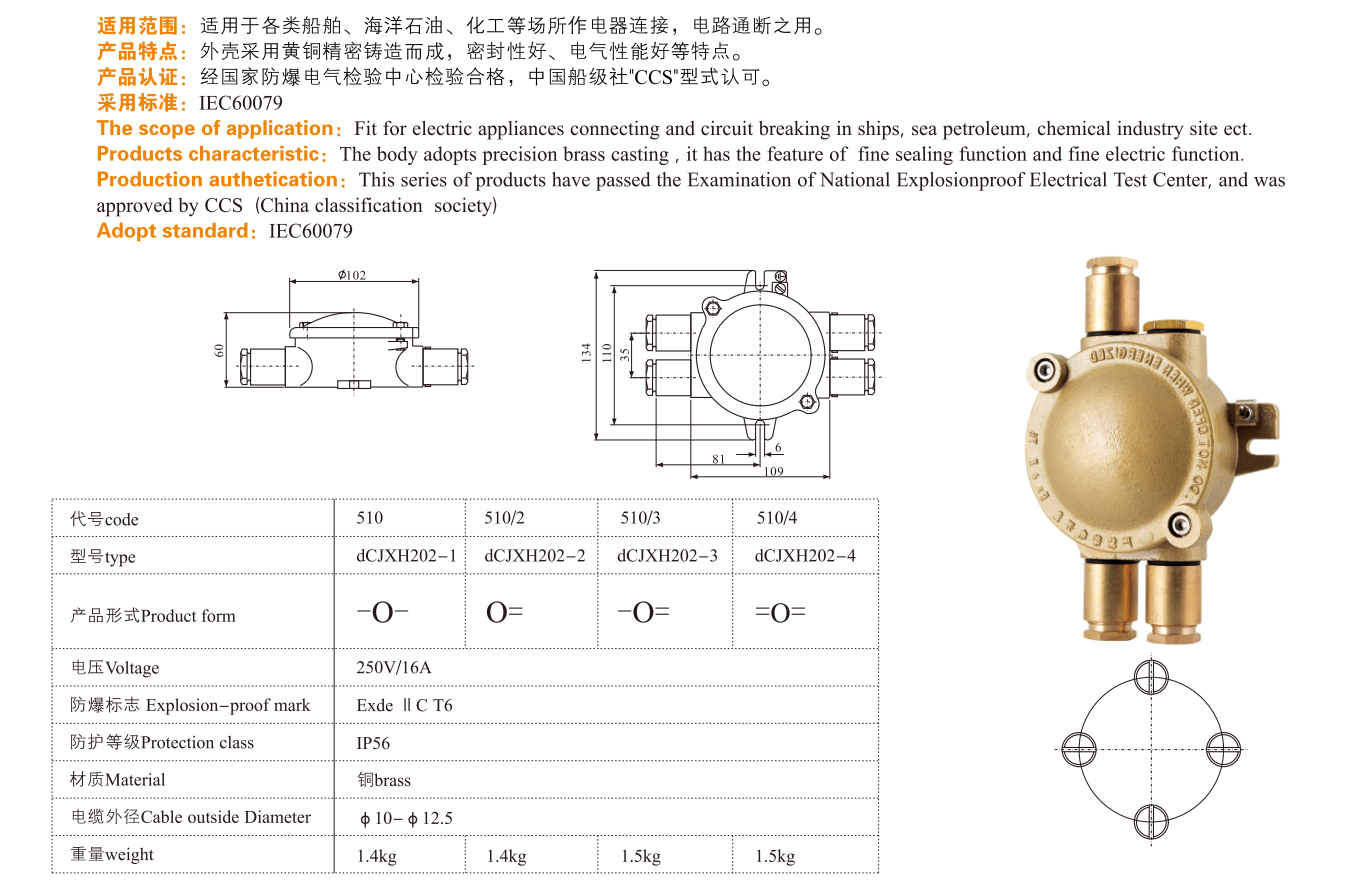 | 防爆標志: | ExdeIICT6 | 防護等級: | IP56 |