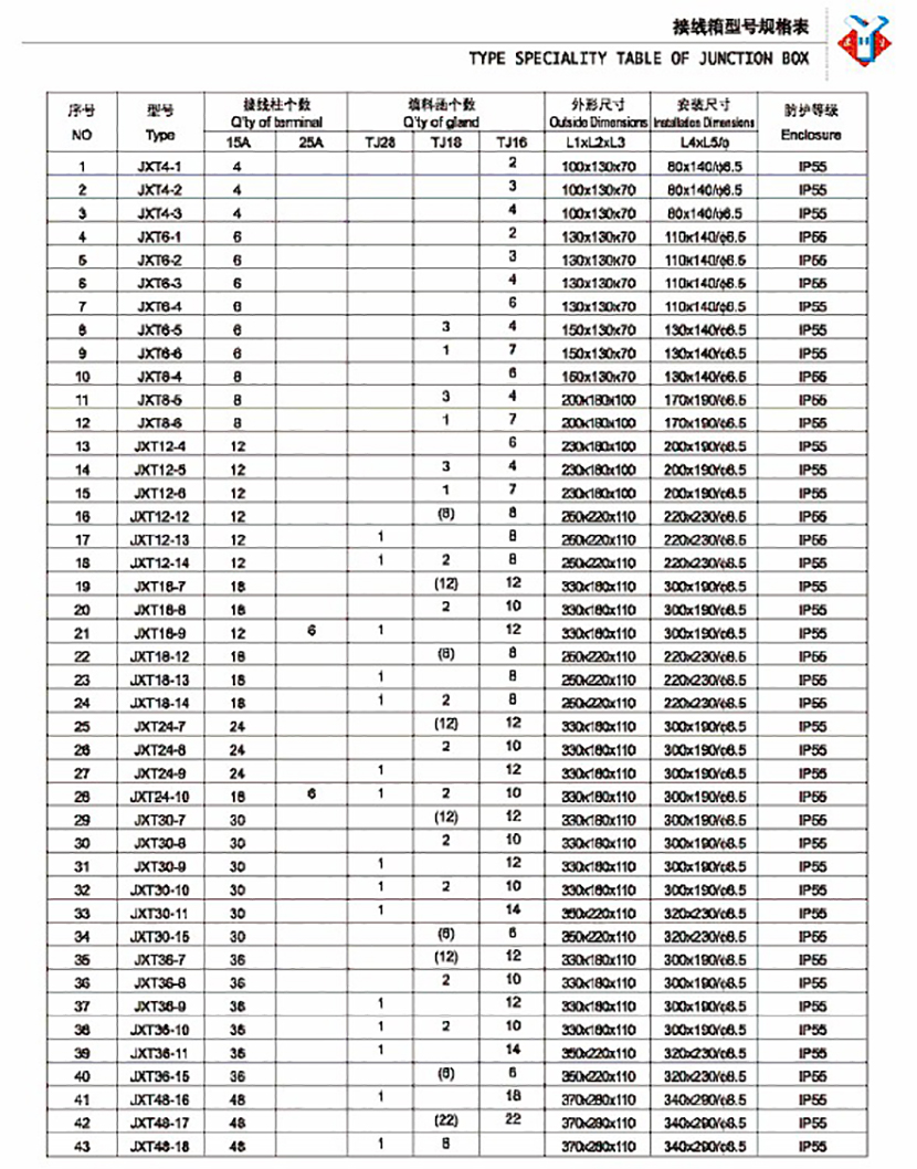 | 接線柱個數: | 18 | 填料函個數: | TJ16/12 |