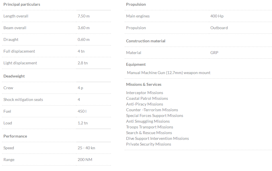 | 總長(zhǎng): | 7.50m | 航速: | 40kn |