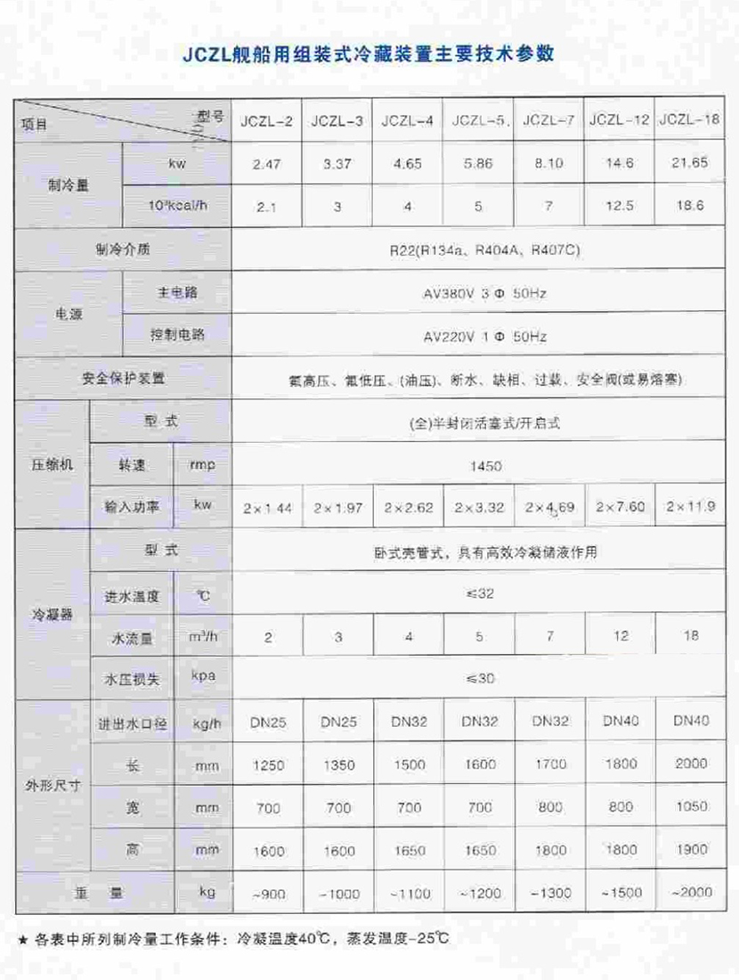 | 重量: | ~1000 kg | 制冷介質: | R22(R134a、R404A、R407C) |