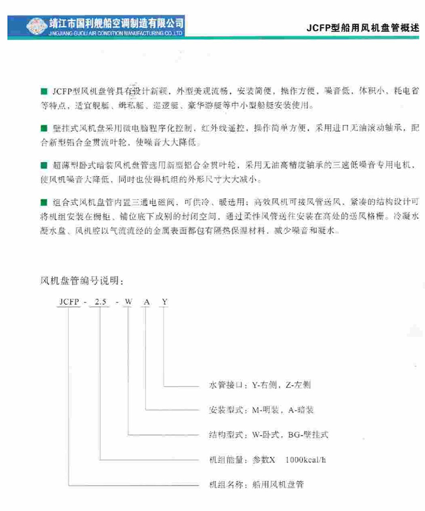 | JCFP系列艦船用超薄型臥式暗裝風機盤管 | |||