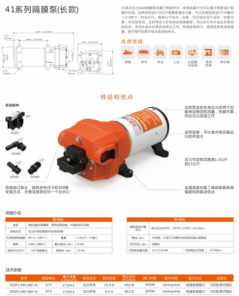 流量: 17.0l/min 額定電壓: 12V