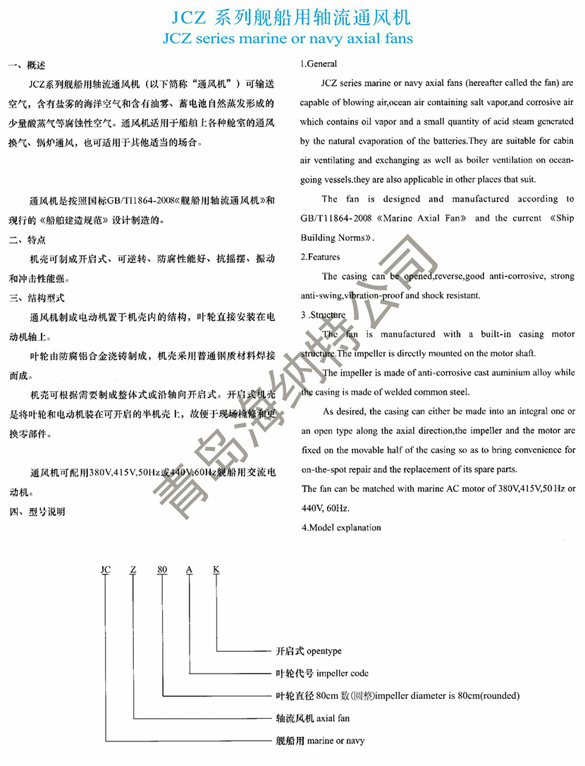 | JCZ系列艦船用軸流通風機 | |||
