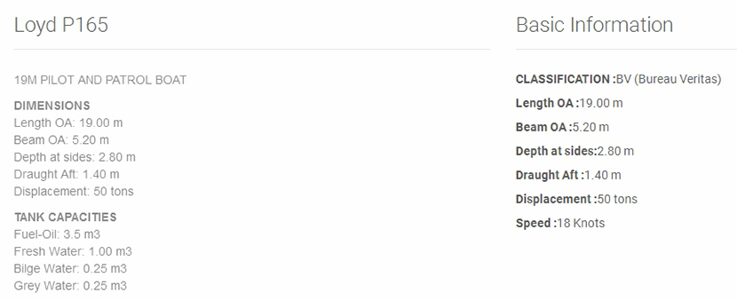 | 總長: | 19.00m | 航速: | 18kn |