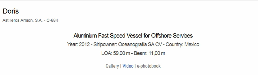 | 總長: | 59.00m | 船東: | Oceanografia SA CV |