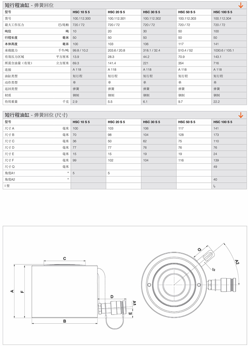 | 短行程彈簧回位油缸 | |||
