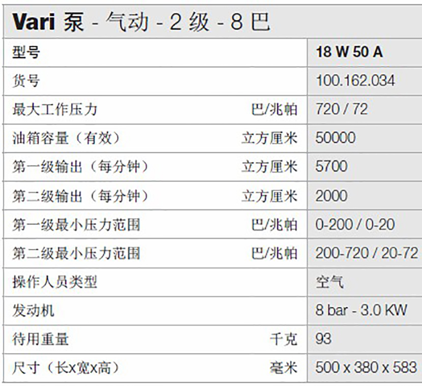 | 氣動2級8巴Vari泵 | |||