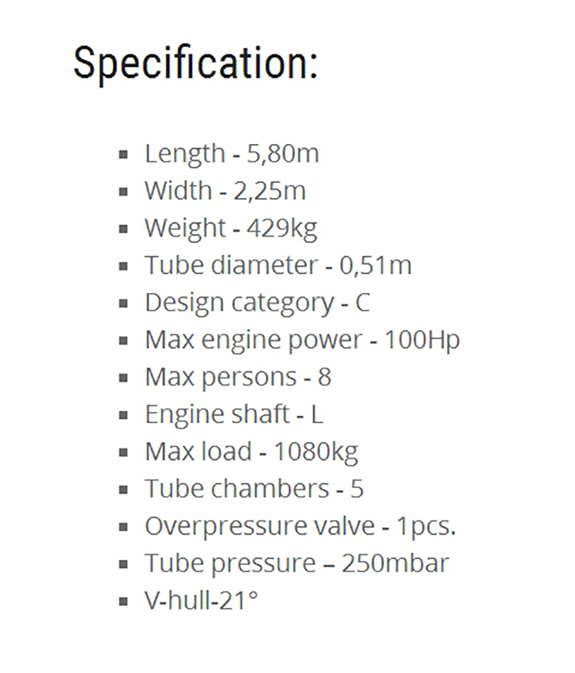| 總長: | 5.80m | 最大乘員: | 8p |