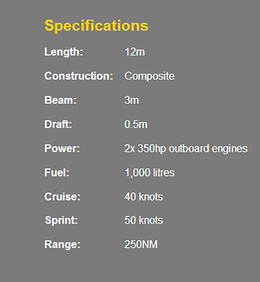 | 12米剛性船體充氣高速攔截艇 | |||