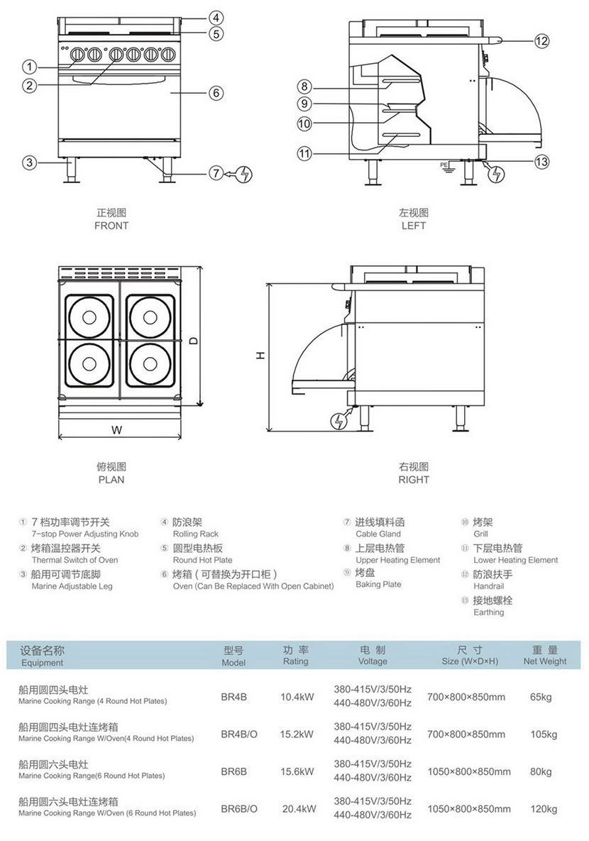 | 類型: | 船用電灶 | 外形尺寸: | 700×800×850mm |