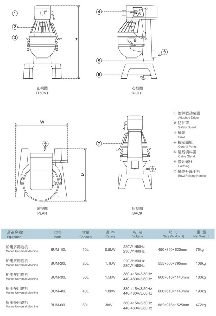 電制: 380-415V/3/50Hz;440-480V/3/60Hz 尺寸: 600×610×1140mm