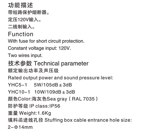| 功率: | 10W | 聲壓等級: | 109dB |