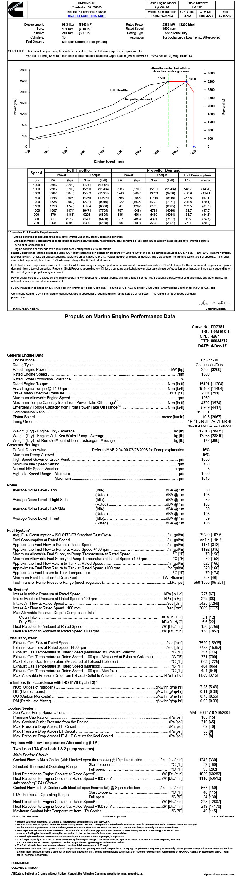 | 廢氣排溫: | 397℃(Measured at Exhaust Collector)/464℃(Manifold) | 廢氣體積流量: | 7520L/S |