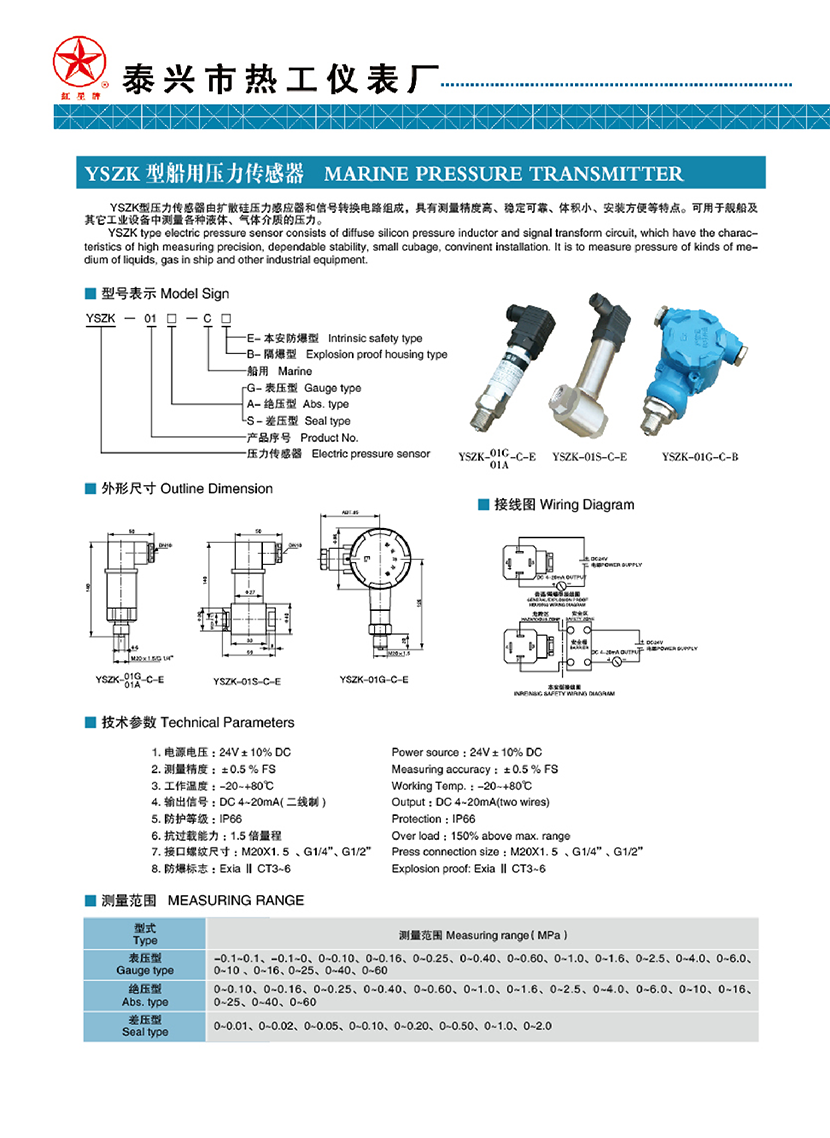 | YSZK型船用壓力傳感器 | |||
